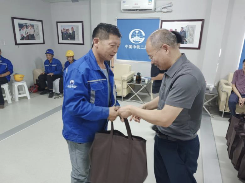 2023年十一和中秋雙節即將到來,為了深入貫徹公司以人為本的核心管理理念,感謝一線員工多年來的辛勤耕耘和默默付出,進一步做好基層生產工作人員的生活保障工作,充分體現公司對一線生產工作人員的尊重與關懷,公司為每一位一線生產工作人員準備了豐富的慰問禮包。由公司總經理嚴建兵同志,常務副總經理任漢鋒同志帶隊,對各個施工現場的一線生產工作人員進行了慰問。