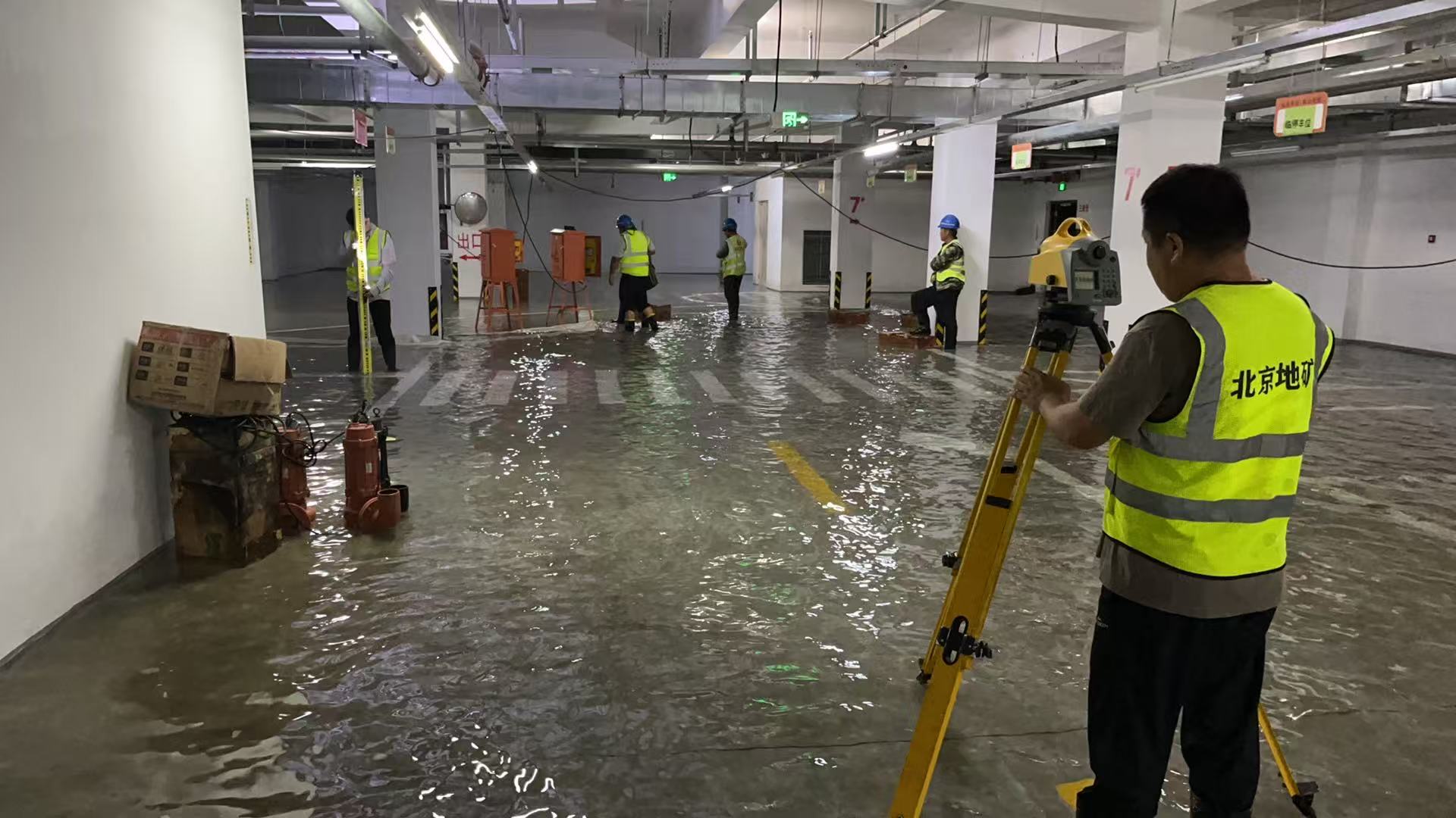 高濕度干擾:涌水導致車庫濕度急劇攀升,水汽與水霧持續附著于水準儀鏡片及機身表面,造成光學視線模糊,電子元件更面臨受潮短路風險;